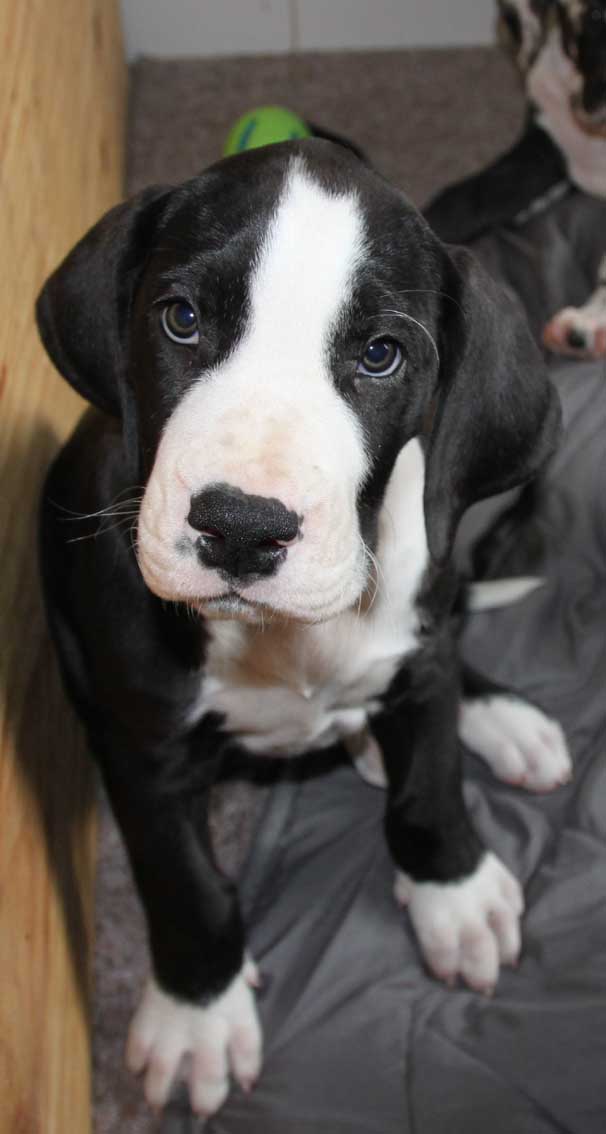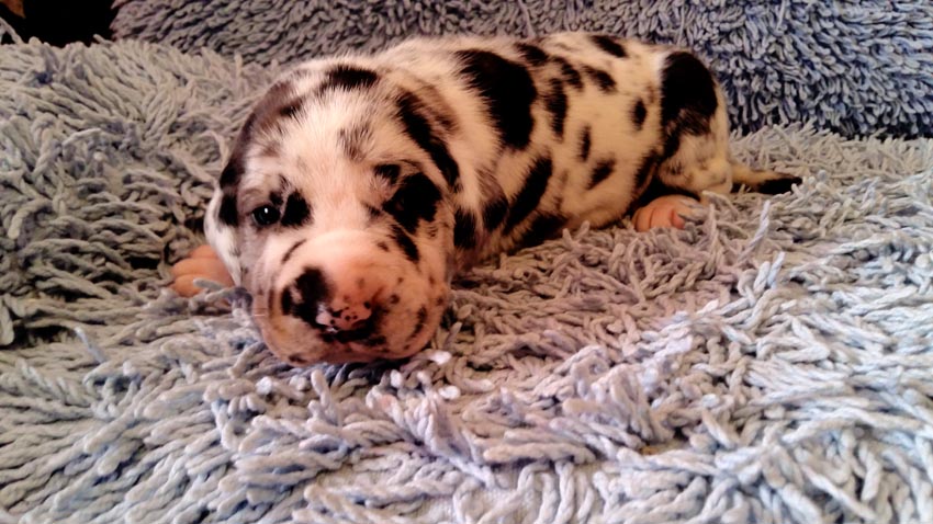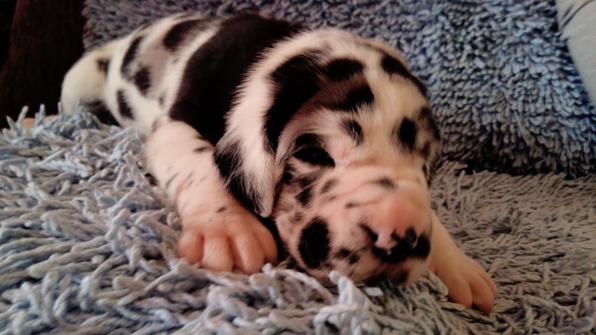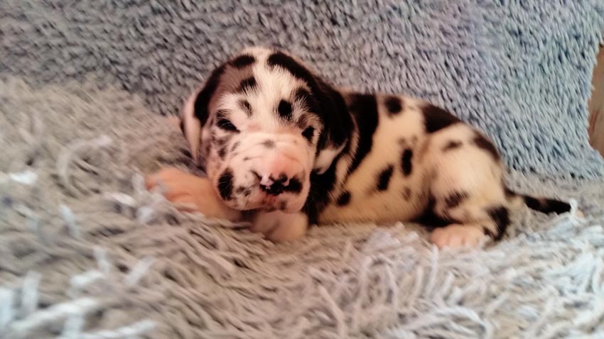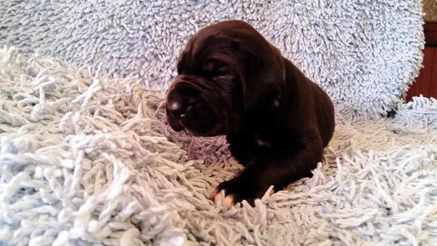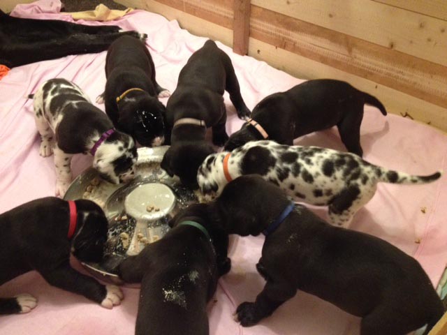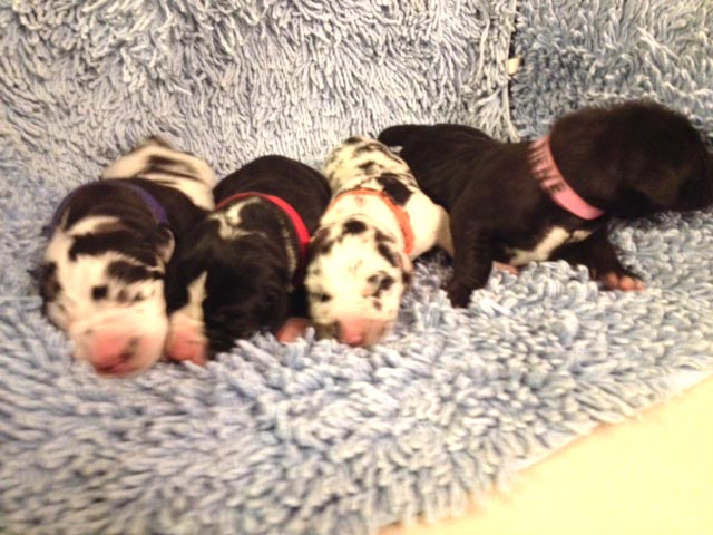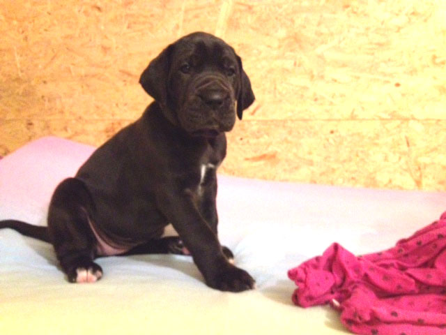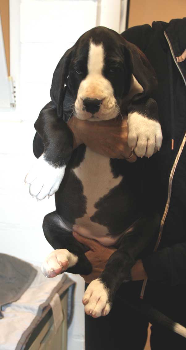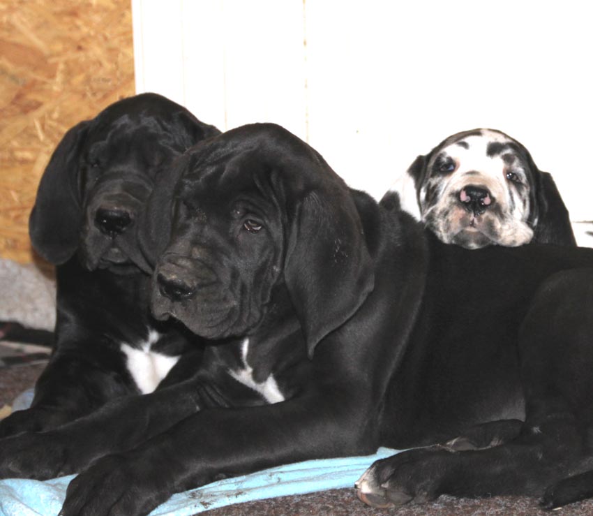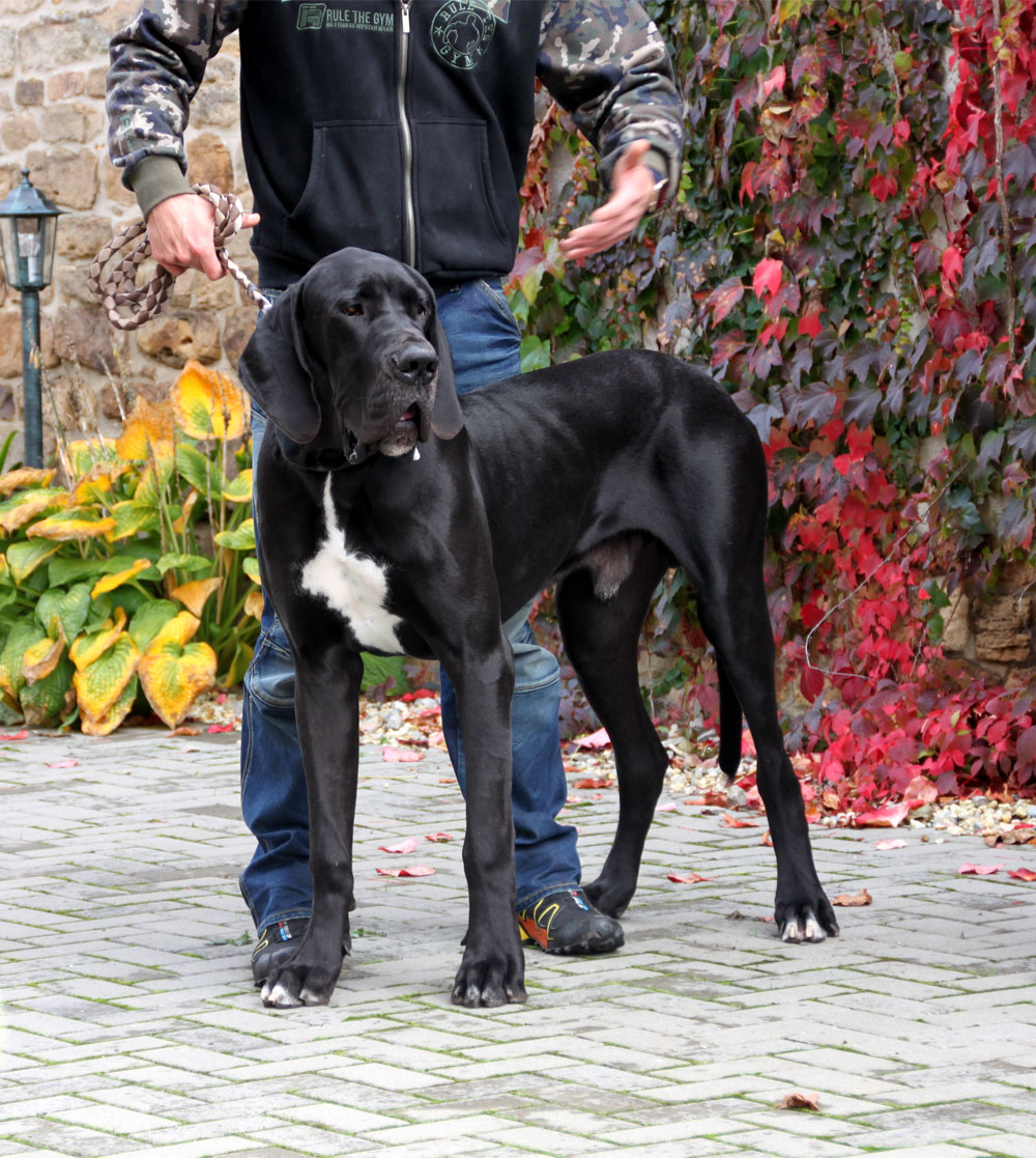 Mein 1. Stelldichein mit der schwarzen Perle " Cassandra v. Harbker Schloß" hat Früchte getragen - ich wurde am 17.12.2016 Papa von 8 gesunden und hübschen Doggenbabys. Mit 8 Wochen wurde die Wurfabnahme durch den verantwortlichen Zuchtwart des DDC 1888 e.V. durchgeführt. Allen Welpen wurden korrekte Scherengebisse, gut geschlossene Augen, Katzenpfoten und vorhandene Hoden bescheinigt.