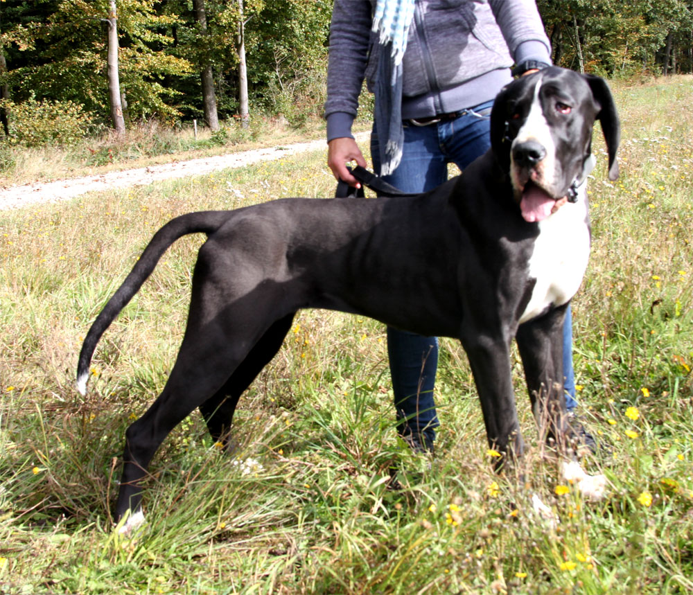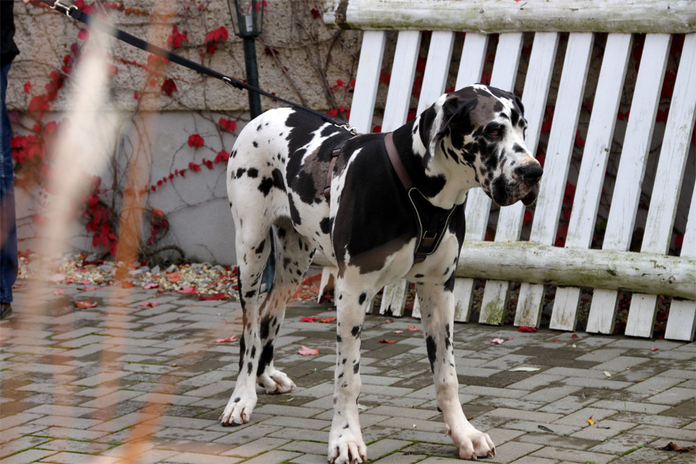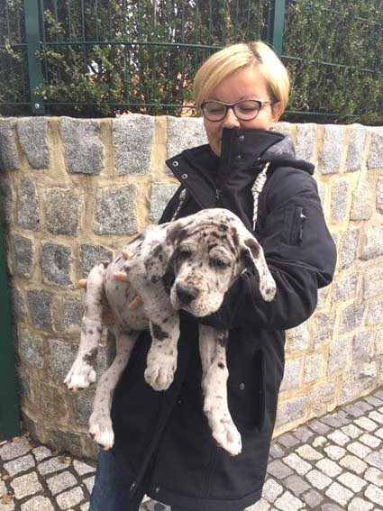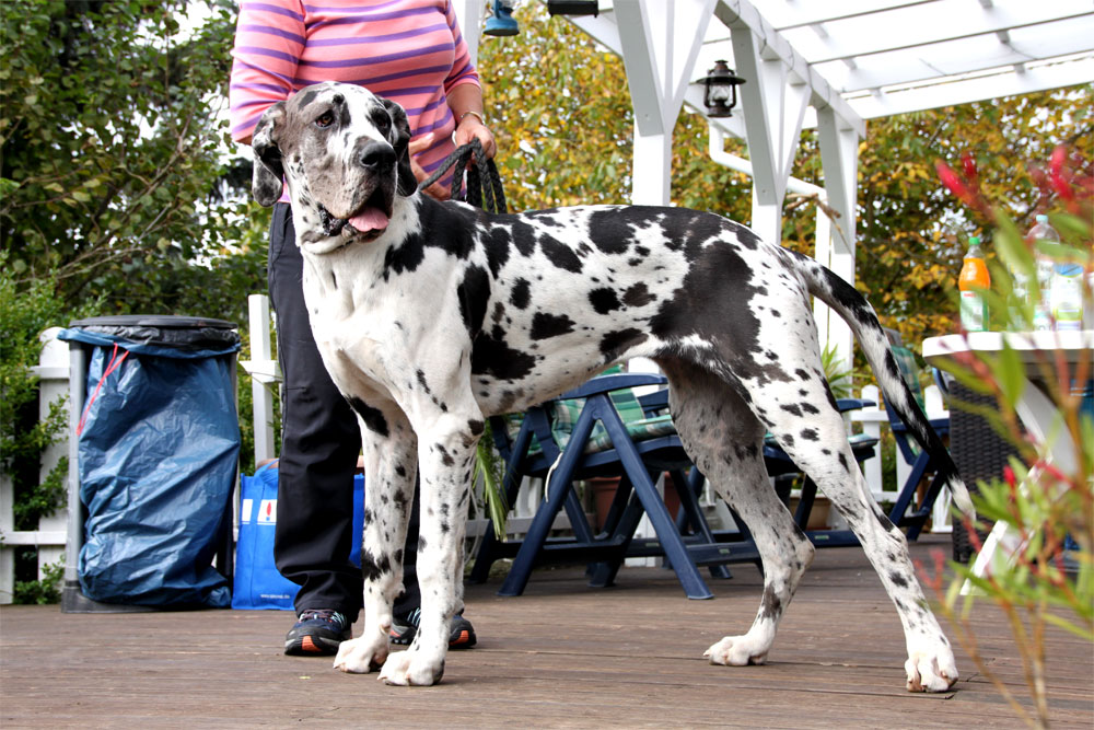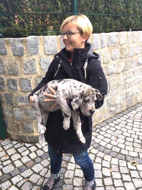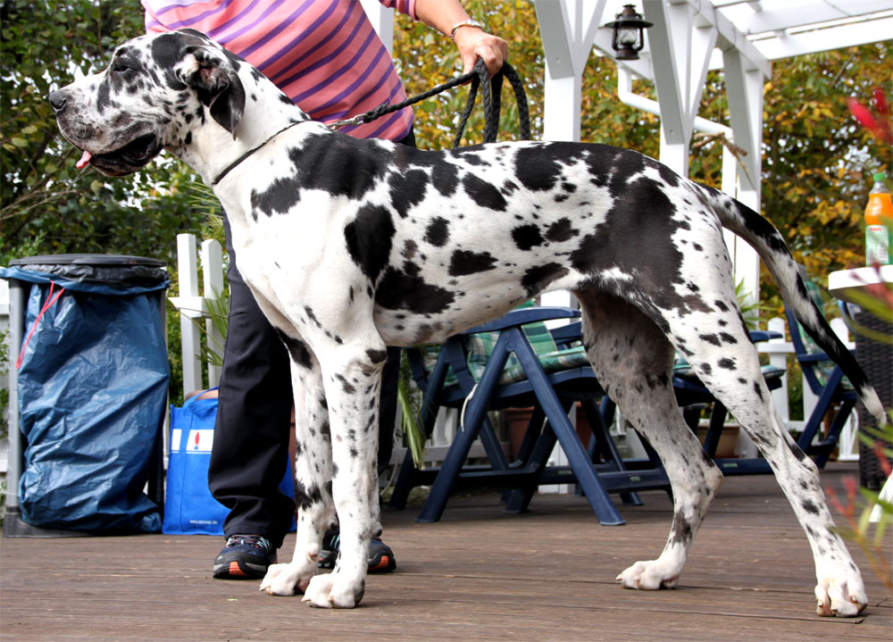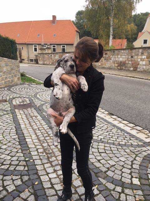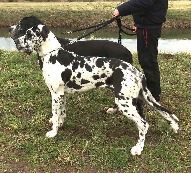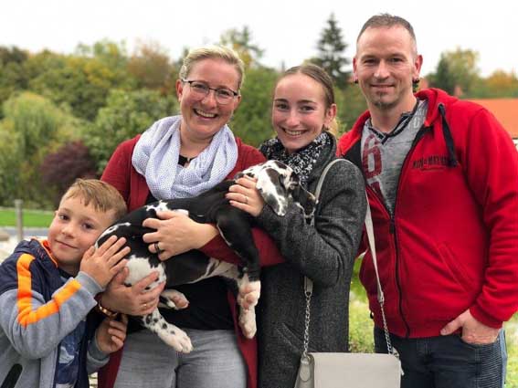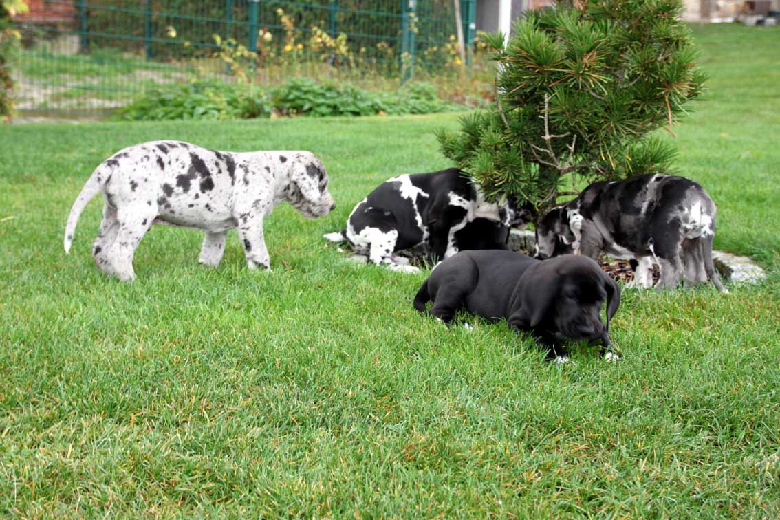 Am 1. Oktober 2017 wurden wir zum Welpentreffen nach Lossa eingeladen. 5 Welpenbesitzer hatten zugesagt und waren auch anwesend, was sehr beachtenswert ist. Die 3 schwarzen Rüden waren für das Alter von 9 1/2 Monaten sehr groß und kräftig. Alle Junghunde stehen auf sehr schönen Katzenpfoten und auf geraden, kräftigen Läufen. Die gefleckten Hündinnen haben eine reinweiße Grundfarbe. Alle dort anwesenden Hunde haben ein Scherengebiß. Es war ein gelungenes Treffen mit einem angeregten Informationsaustausch. Wir haben wieder nette, aufgeschlossene Doggenleute kennengelernt, die das Wohl ihrer Lieblinge im Auge haben. Wir danken Fam. Weihrauch für diesen schönen Tag.