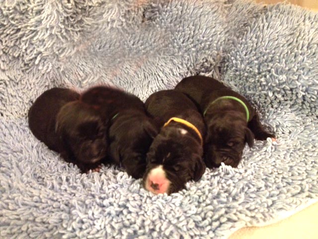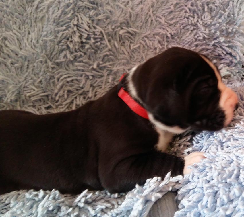 Die Welpen sind nun 8 Wochen alt. Der Zuchtwart hat den Wurf begutachtet und findet die Welpen anatomisch ansprechend, mit sehr guten Köpfen und korrekt geschlossenen Augen. Sie sind wesensmäßig ausgeglichen, freundlich und Fremden gegenüber unbeeindruckt. Wir freuen uns über die gute Beurteilung des Wurfes. Da die Herbstferien bevorstehen, haben die Züchter Verständnis, dass einige Welpen bereits in der 9. Woche in ihr neues Zuhause umziehen.