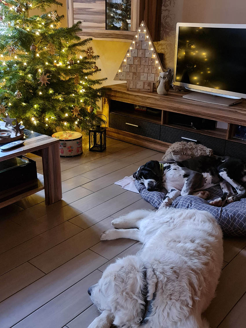 Meine Tochter - Bärbel v. Lossaer Wolfsanger - hat am 29.8.2021 ihre Babys zur Welt gebracht - 2 gefleckte Rüden, 2 schwarze Rüden, 1 Grautigerrüden, 1 gefleckte und 1 schwarze Hündin.