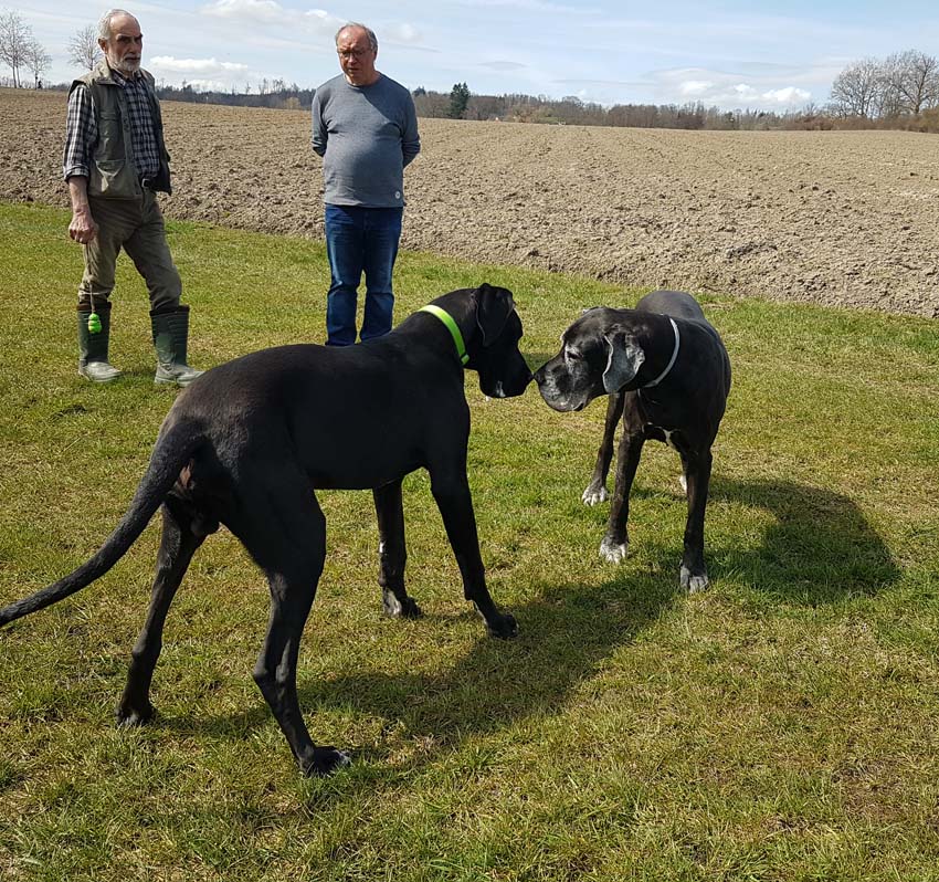 Heute, Karfreitag, besuchten uns Ines Dirk und Marten mit Goethe, der mit reichlich 7 Monaten schon fast so groß ist wie seine Großmutter Esmee´. Goethe hat ein angenehmes Wesen, ist anatomisch korrekt aufgebaut und altersgemäß sehr gut entwickelt.